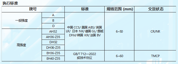 普陽采用微合金化成分設(shè)計(jì)+控軋、正火軋制等生產(chǎn)技術(shù),開發(fā)不同性能要求的高強(qiáng)度船舶及海洋工程用鋼。?DH36-Z35及以下鋼級(jí)已通過中國(CCS)、美國(ABS)、英國(LR)、日本(NK)、德國(GL)、挪威(DNV)、韓國(KR)、法國(BV)八??國船級(jí)社的認(rèn)證。