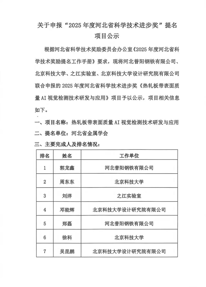 關(guān)于申報“2025年度河北省科學(xué)技術(shù)進(jìn)步獎”提名 項(xiàng)目公示
