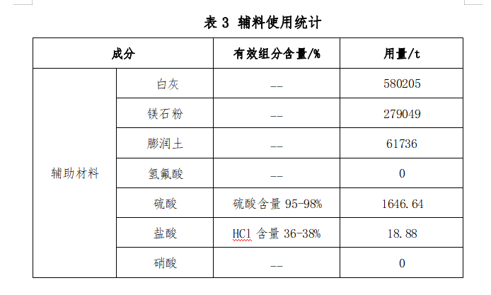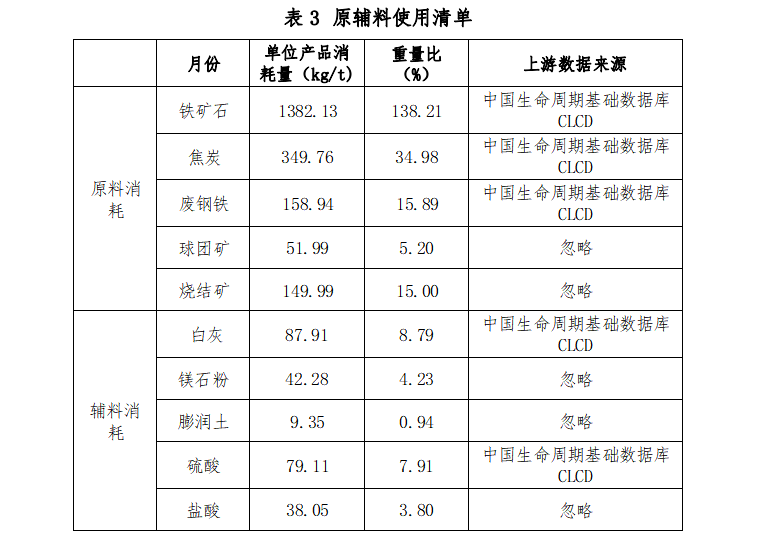 3.2 原輔料使用及運(yùn)輸數(shù)據(jù)