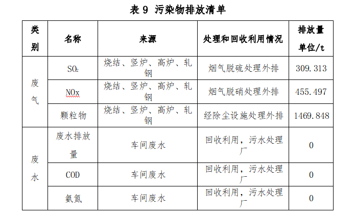 ? 生產(chǎn)過(guò)程中排放的主要污染物為廢氣及廢水兩類,廢氣中主要?污染物包括二氧化硫、氮氧化物、顆粒物。廢水中主要污染物包括COD?和氨氮。主要污染物排放統(tǒng)計(jì)見(jiàn)表?9。