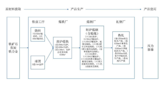 ü?壓力容器用鋼板的生命周期包括:鐵礦石、煤炭開(kāi)采和?運(yùn)輸→煉焦→燒結(jié)、球團(tuán)→?煉鐵→煉鋼→精煉→連鑄→軋鋼