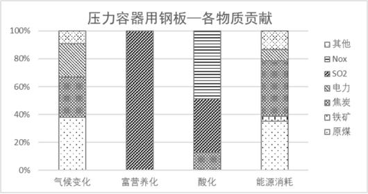 ? 壓力容器用鋼板的環(huán)境影響采用氣候變化、富營(yíng)養(yǎng)化、酸化、能源消耗共四項(xiàng)指標(biāo)進(jìn)行評(píng)價(jià)。