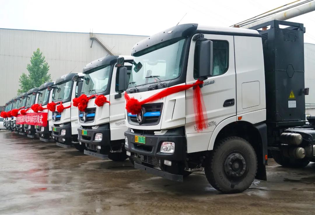 運輸部長張利軍表示,此次集團共購進30輛新能源電動重卡,將分3天3批次交付。每輛可載重36噸貨物,配置280千瓦時的磷酸鐵鋰電池,一個半小時即可充滿電,最高可行駛120公里,為滿足運輸需求,在廠內(nèi)設有集中充電樁3處。相比燃油重卡運輸具有停車作業(yè)無聲、裝運環(huán)節(jié)少、點對點運輸周轉快、效率高、運輸成本低等優(yōu)勢。這批電動重卡投用以后,集團清潔運輸比例將提升至80%以上,后續(xù)集團還會結合實際需求,持續(xù)增加電動重卡配置量,為普陽爭創(chuàng)超低排放A類環(huán)保企業(yè)、實現(xiàn)綠色低碳發(fā)展再添新動力。