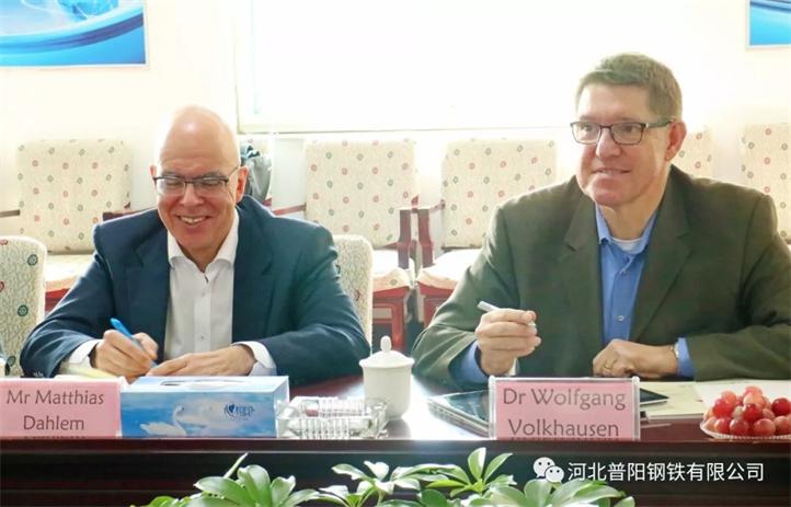 最后,Mr.Matthias.Dahlem和Dr.Wolfgang.Volkhausen以及劉濤博士一行在三樓會議室和張總等人就環(huán)保治理問題進行了深入細致地探討,并希望今后雙方能夠相互合作,整合雙方優(yōu)勢深入開展環(huán)保治理工作,共同促進國內(nèi)綠色鋼鐵產(chǎn)業(yè)的發(fā)展。