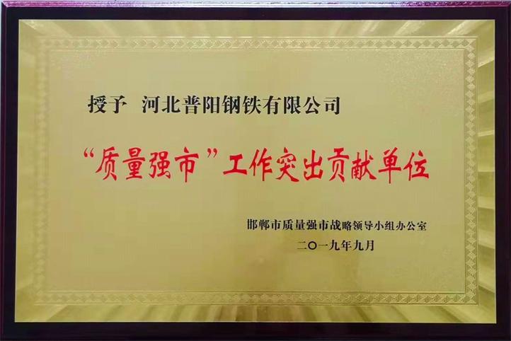 普陽(yáng)鋼鐵自建廠以來(lái),始終高度重視質(zhì)量管理工作,專注于為客戶提供高質(zhì)量、高附加值的精品鋼材,全面推行“窄幅工藝”和精益管理,通過(guò)“走出去,引進(jìn)來(lái)”“嚴(yán)管細(xì)管”等方法,持續(xù)不斷地優(yōu)化工藝技術(shù),穩(wěn)定提升產(chǎn)品質(zhì)量,憑借卓越的質(zhì)量管理,先后榮獲“武安市長(zhǎng)質(zhì)量獎(jiǎng)”“河北省政府質(zhì)量獎(jiǎng)提名獎(jiǎng)”“邯鄲市長(zhǎng)質(zhì)量獎(jiǎng)”和“全國(guó)質(zhì)量獎(jiǎng)鼓勵(lì)獎(jiǎng)”等重量級(jí)榮譽(yù),有5項(xiàng)產(chǎn)品榮獲國(guó)家冶金產(chǎn)品實(shí)物質(zhì)量最高獎(jiǎng)項(xiàng)“金杯獎(jiǎng)”。 |