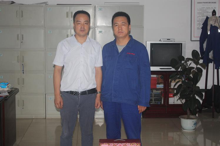 張勝利在接受新武安鋼鐵集團(tuán)董事長(zhǎng)萬喜河頒獎(jiǎng)時(shí)的照片