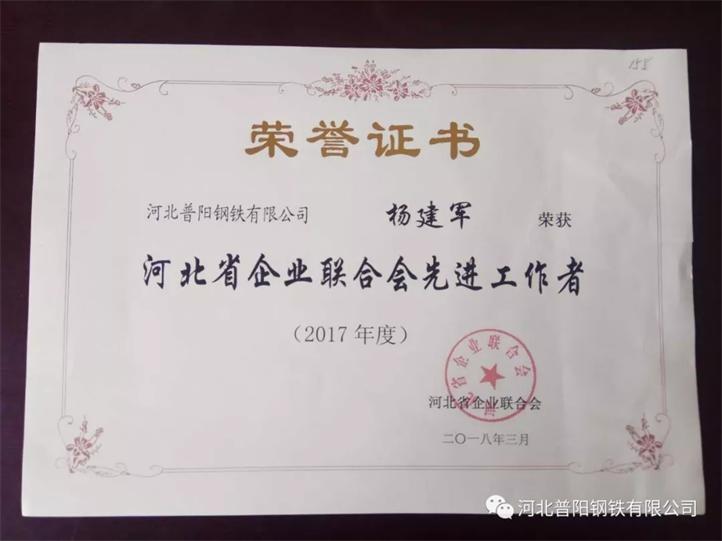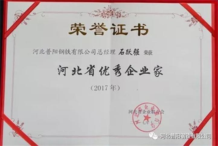 近日,河北省企業(yè)聯(lián)合會表彰全省“明星企業(yè)”大會在石家莊市中山賓館召開,我公司副經理王瑞華應邀出席了會議。會上,我公司被評為“河北省明星企業(yè)”,是為數(shù)不多的鋼鐵企業(yè)之一,彰顯了我公司的實力和競爭力。與此同時,我公司總經理石躍強被評為“河北省優(yōu)秀企業(yè)家”,辦公室主任楊建軍被評為“河北省企業(yè)聯(lián)合會先進工作者”。