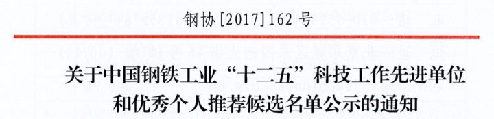 《通知》稱,沒有異議和異議處理完畢的候選單位和人員, 將提交專家委員會(huì)和鋼鐵工業(yè)科技大會(huì)籌備工作領(lǐng)導(dǎo)小組評(píng)選。