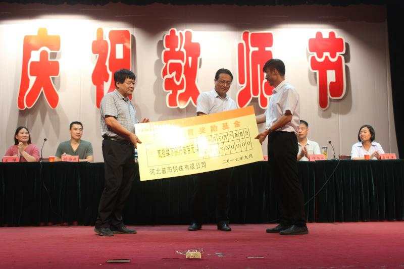 會(huì)上,優(yōu)秀教師代表做了典型發(fā)言,對(duì)捐資助教先進(jìn)單位、先進(jìn)個(gè)人及優(yōu)秀教師進(jìn)行的頒獎(jiǎng)。我公司榮獲“捐資助教先進(jìn)單位”,董事長(zhǎng)郭恩元榮獲“捐資助教先進(jìn)個(gè)人”。總經(jīng)理助理石現(xiàn)英代表公司為陽(yáng)邑鎮(zhèn)捐贈(zèng)了教育獎(jiǎng)勵(lì)基金。