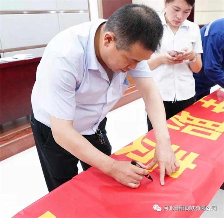 李總講話結束后,安監(jiān)部科長李紅兵宣布安全生產月活動正式啟動,各廠安全科人員在安全生產月活動主題條幅上簽字承諾。 大會最后,全體參會人員在安監(jiān)部科長李紅兵的帶領下集體宣誓。