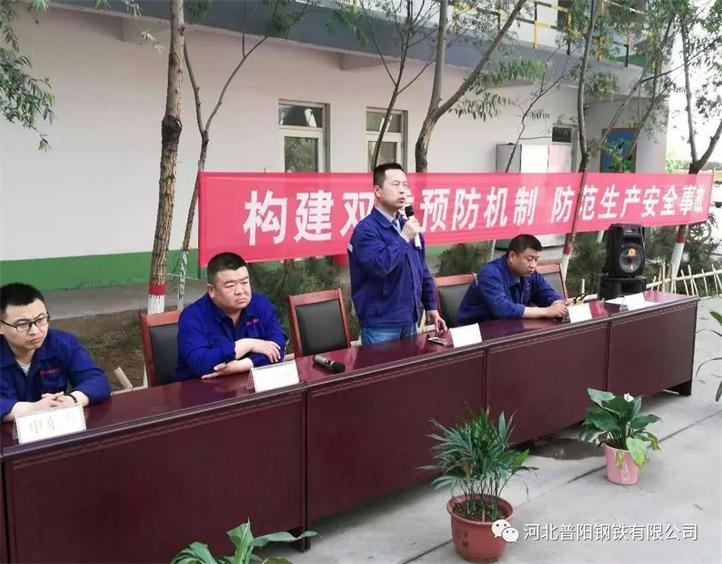 大會首先由安監(jiān)部王建東宣讀關于河北普陽鋼鐵有限公司開展2018年全國第十七個“安全生產月”活動的通知。接著安監(jiān)部科長李紅兵宣貫了6月份安全生產月活動主題:“生命至上、安全發(fā)展”以及關于安全生產月開展應急和安全知識競賽的通知。