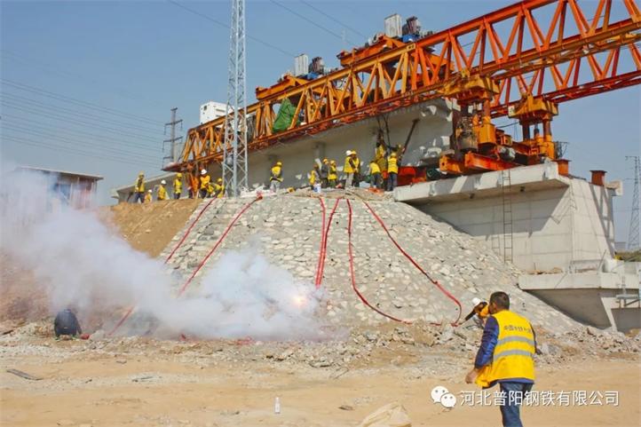 至此,陽邑中橋段橋梁率先架設成功,這標志著普陽鐵路專線橋梁架設施工正式展開,也為全線鐵軌貫通吹響了“沖鋒號”。