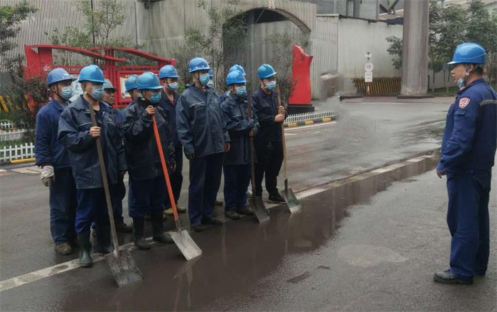 “外邊低洼處積水太多,路面情況不清楚,這進進出出的汽車、鏟車需要指揮引導!”