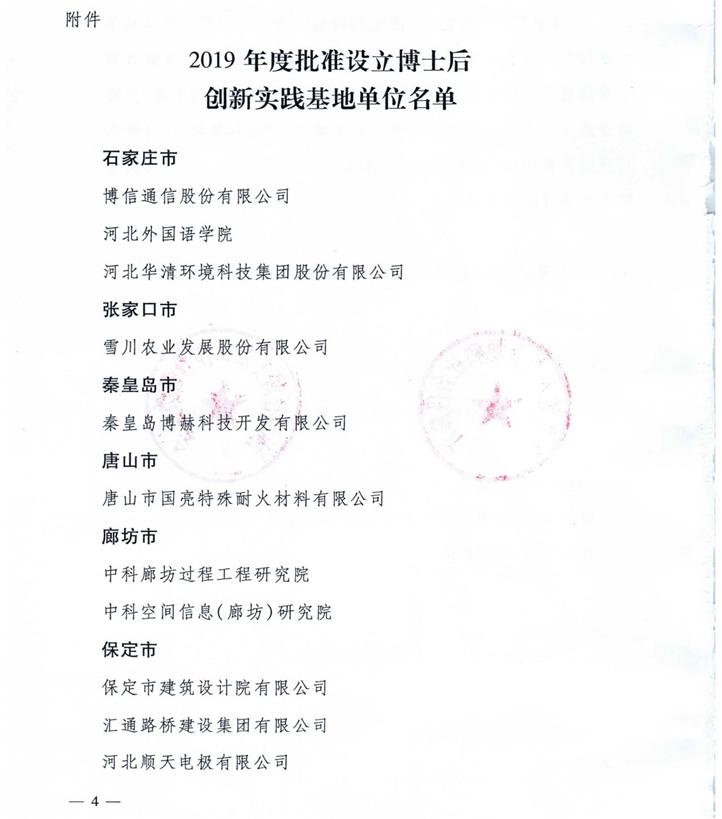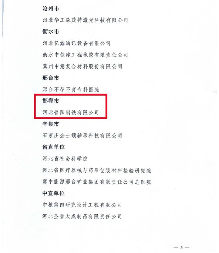 近日,根據(jù)《河北省人力資源和社會(huì)保障廳、河北省博士后工作管理委員會(huì)【2019】311號(hào)》文件公示,全省共有23家單位獲批設(shè)立博士后創(chuàng)新實(shí)踐基地,其中河北普陽(yáng)鋼鐵有限公司榜上有名,是邯鄲市今年唯一入選的鋼鐵企業(yè)。