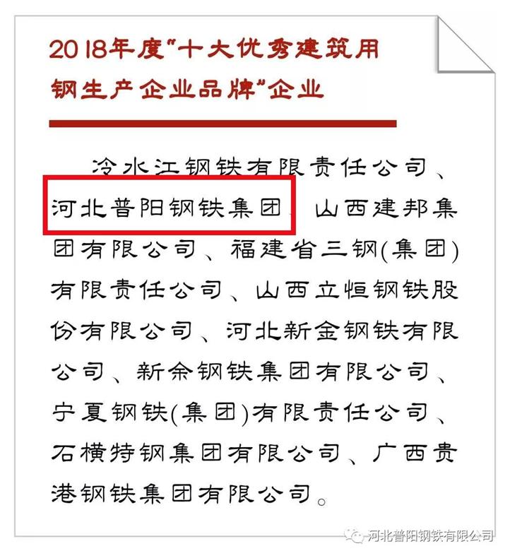 昨日,中國冶金報(bào)社發(fā)布了2018年度“十大優(yōu)秀建筑用鋼生產(chǎn)企業(yè)品牌”,我公司憑借卓越的產(chǎn)品質(zhì)量和廣泛的品牌影響力,榮列十大品牌第2位!這是繼5月9日榮獲 “中國品牌價(jià)值”排名第5后,我公司在品牌影響力方面獲得的又一重量級(jí)獎(jiǎng)項(xiàng)!