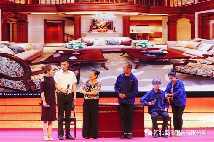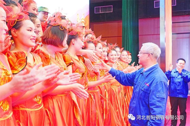由普陽人自編自演的歌伴舞、啞劇、小品、朗誦等節(jié)目,通過演員們激情的表演,表現(xiàn)的淋漓盡致,展現(xiàn)出了社會(huì)主義新時(shí)代的幸福場(chǎng)景,也表達(dá)了普陽人對(duì)祖國的熱愛。由全體演職人員共同高歌的《普陽之歌》,把晚會(huì)推向了高潮,隨后,陽邑鎮(zhèn)領(lǐng)導(dǎo)和公司領(lǐng)導(dǎo)上臺(tái)與演職人員合影,董事長郭恩元與演員們親切握手。