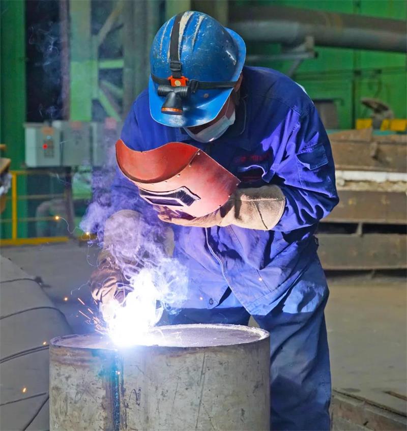 每當(dāng)我走進(jìn)板坯車間路過維修切焊區(qū)時(shí),總能看見一個(gè)熟悉的身影。他總是那么忙碌,憨厚的鼻梁上架著大框眼鏡,渾身有股子書生氣,但遇到棘手的問題,這個(gè)看似文弱的老普陽(yáng),總能噴發(fā)出讓人意外執(zhí)著,他就是智銀強(qiáng)師傅。